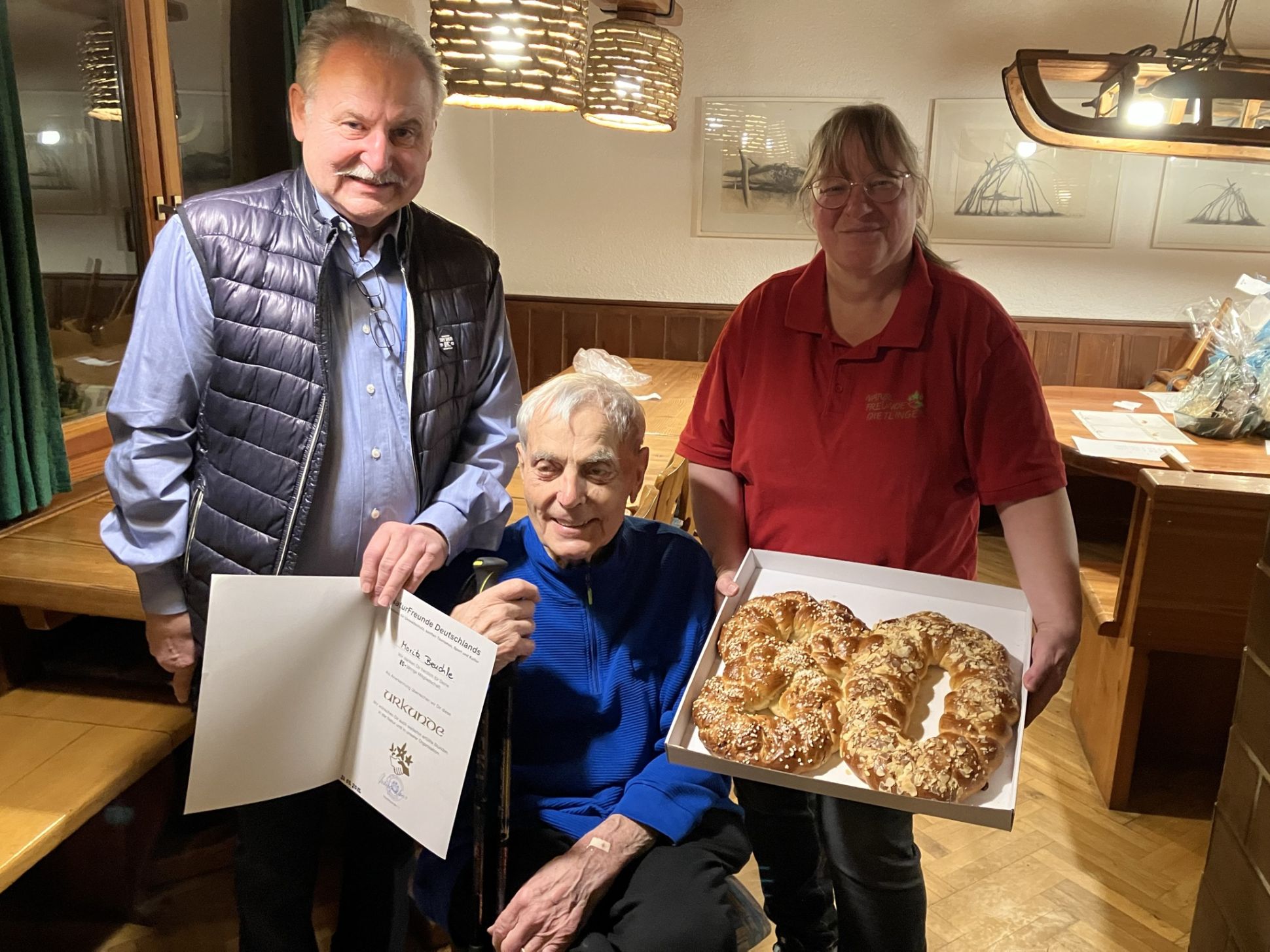 Insgesamt erschienen sieben Mitglieder persönlich zur Ehrung – ihnen wurde eine Urkunde, eine Anstecknadel der NaturFreunde Deutschland sowie ein Präsent überreicht.